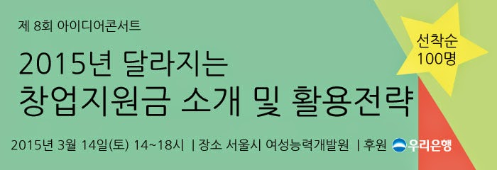 | [자금세미나] 최대1억원까지 무상으로 지원하는 창업자금조달 및 신청서 작성법(4월 2일,토요일) (0) | 2016.03.23 |