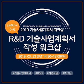 | [2019년 기술사업계획서 워크샵 4부] 하루만에 끝내는 R&D 기술사업계획서 작성 워크샵(4월 13일,토) (0) | 2019.02.20 |